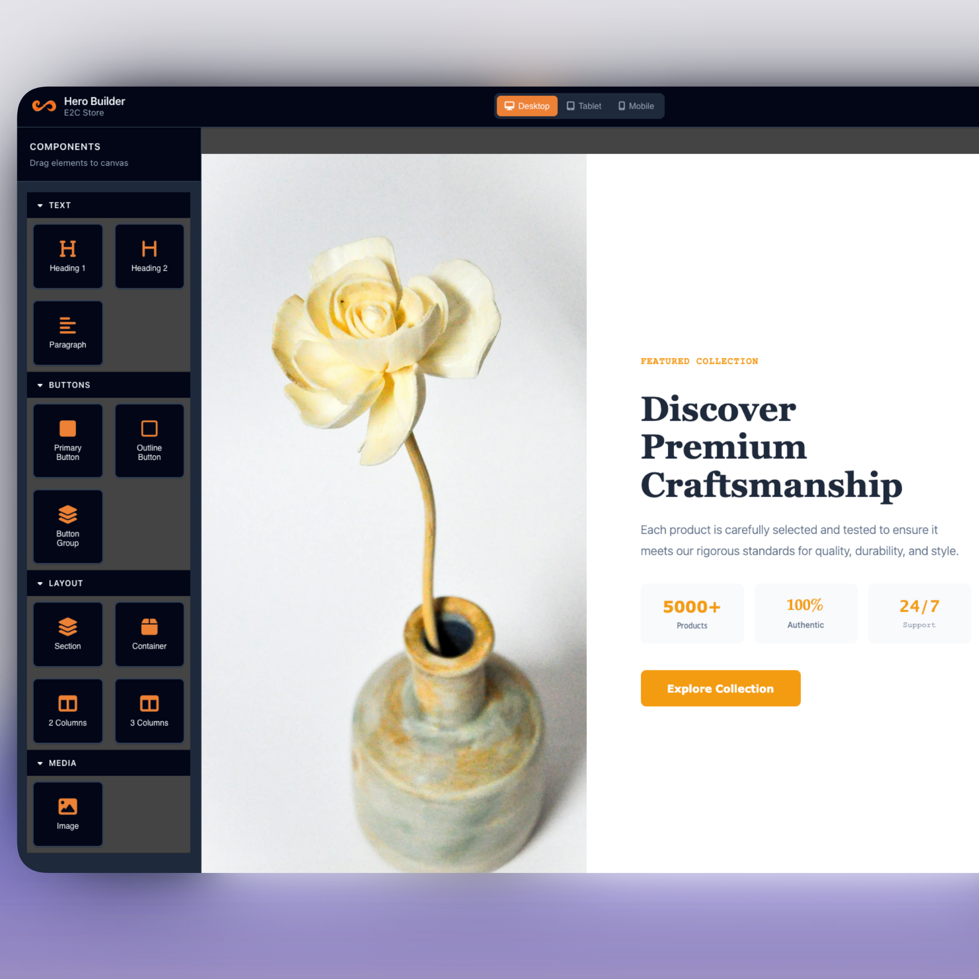 Ready to transform your online store into a true reflection of your brand? The E2C Hero Builder gives you the creative freedom to do just that.